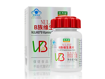 功效成分及含量:每片含:维生素B1 15mg、维生素B2 15mg、维生素B6 7.5mg、维生素B12 7.5μg、烟酰胺37.5mg、叶酸375μg、生物素75μg、泛酸15mg