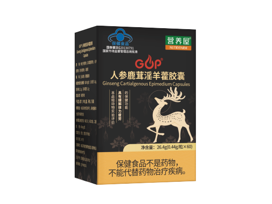 【原 料】枸杞子提取物、淫羊藿提取物、人参提取物、麦冬提取物、马鹿茸