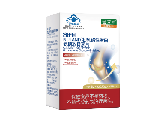 【原料】D-氨基葡萄糖盐酸盐、柠檬酸钙、葛根提取物、硫酸软骨素钠、酪蛋白磷酸肽、初乳碱性蛋白